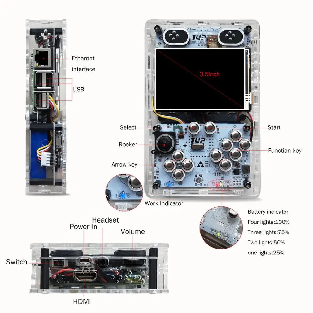 Product Name: DIY 1-Up Pi Junge Handheld Video Spiel Konsole Raspberry Pi 3B HD Ausgang 3,5 Inch Tragbare Retro Spiel Spieler Unterstützung Multiplayer