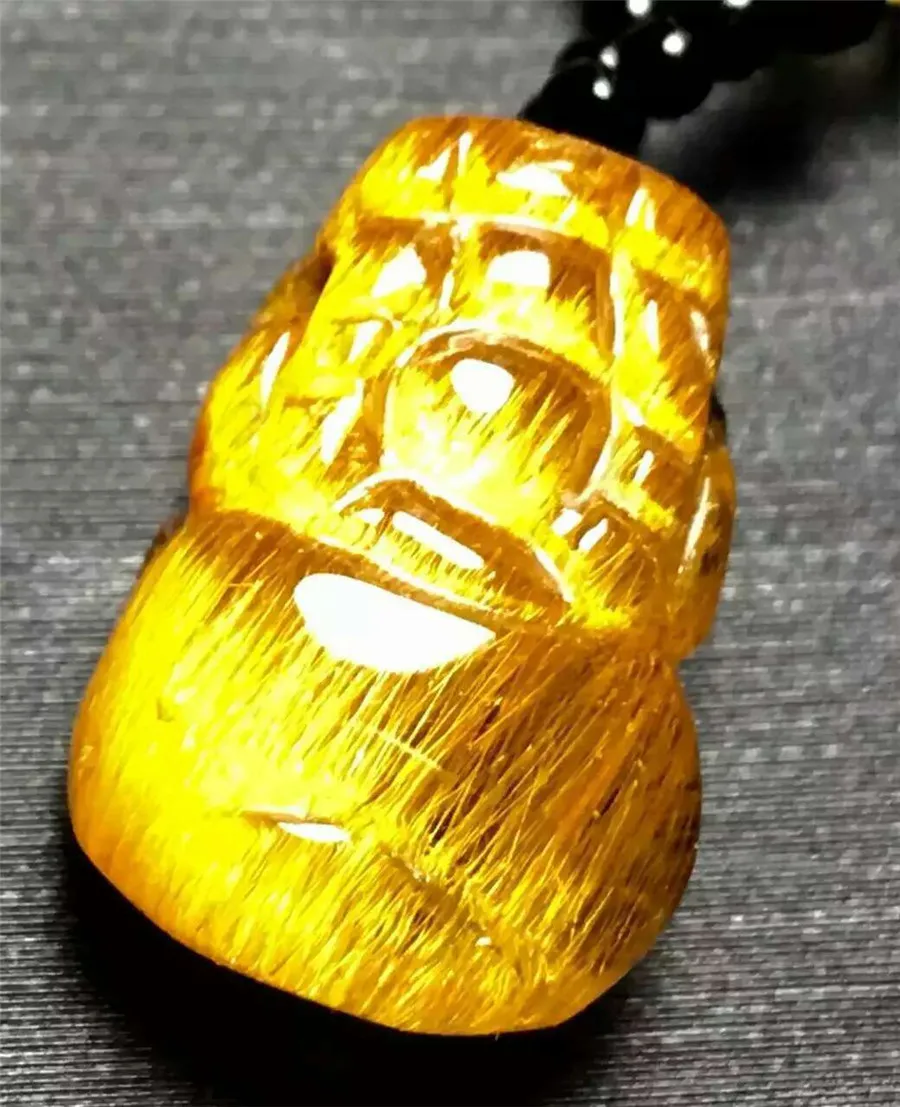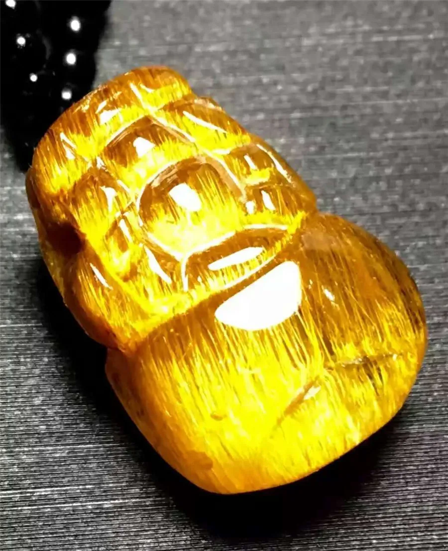 Product Name: Echte Natürliche Gold Rutilquarz Drachen Pi Xiu Form Frauen Männer Anhänger Perle 17x12x8mm