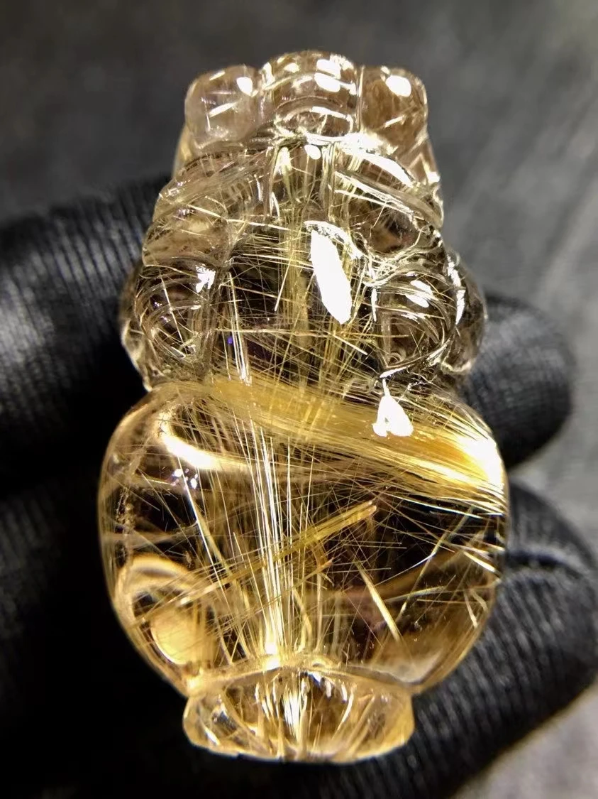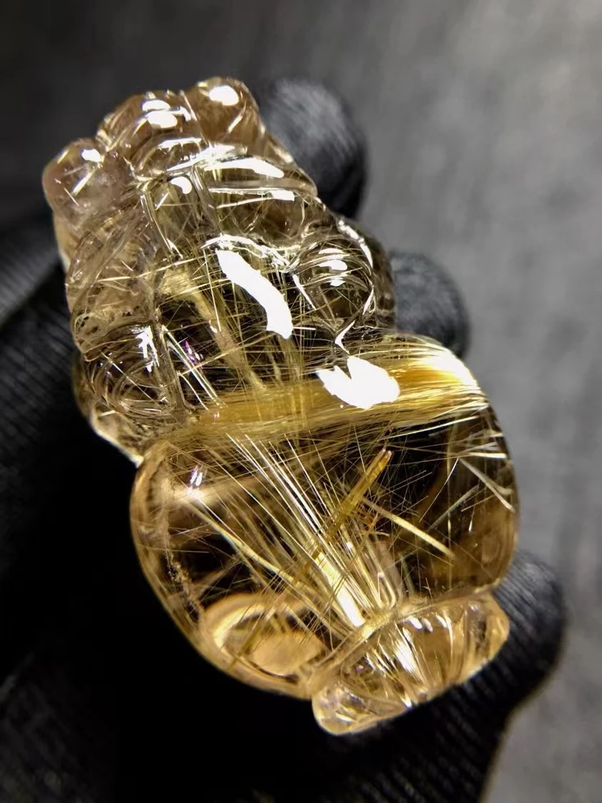 Product Name: Natürliche Gold Rutilquarz Pi Xiu Geschnitzte Anhänger Brasilien 35.4*22.2*18,6mm Wohlhabenden Stein Frauen Männer Schmuck Echtes AAAAAA