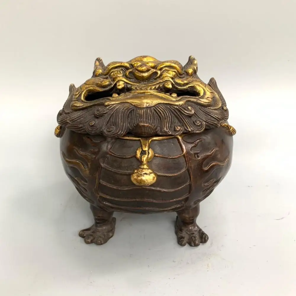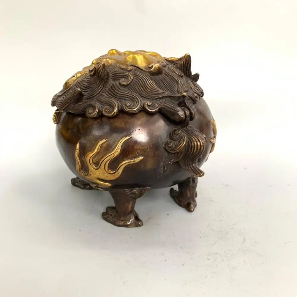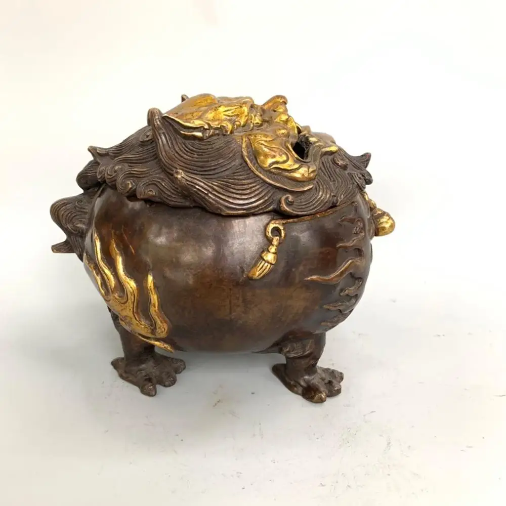 Product Name: Wohnkultur 6 "Tibet Buddhismus Tempel Old Bronze Gilt Glück Beast Pi Xiu Statue Weihrauch Brenner Pudel Weihrauch Brenner Weihrauch