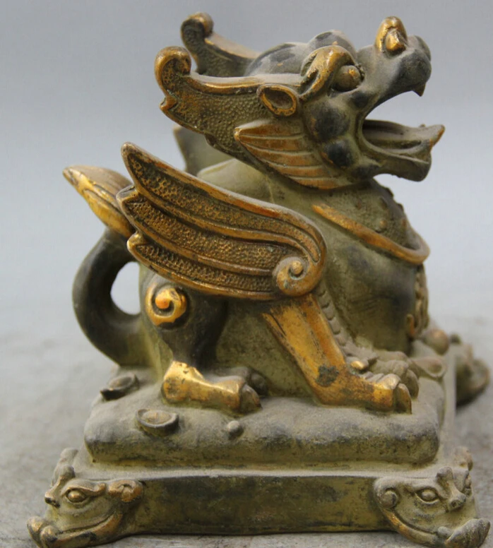 Special Offer Song Voge Edelstein S2441 6 "Chinesische Bronze Gild Reichtum Wang Fly Einhorn Beast Pi Xiu Statue Skulptur Discount 0% Today!